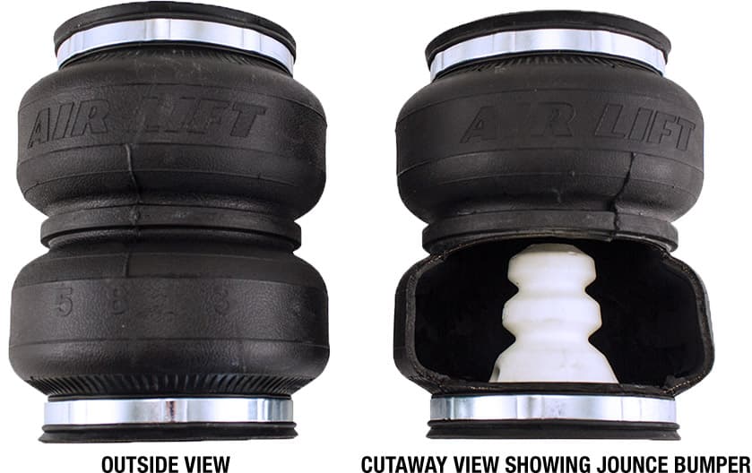 The key difference between these two systems is the presence of an Air Lift exclusive internal jounce bumper, included in all LoadLifter 5000 Ultimate kits.